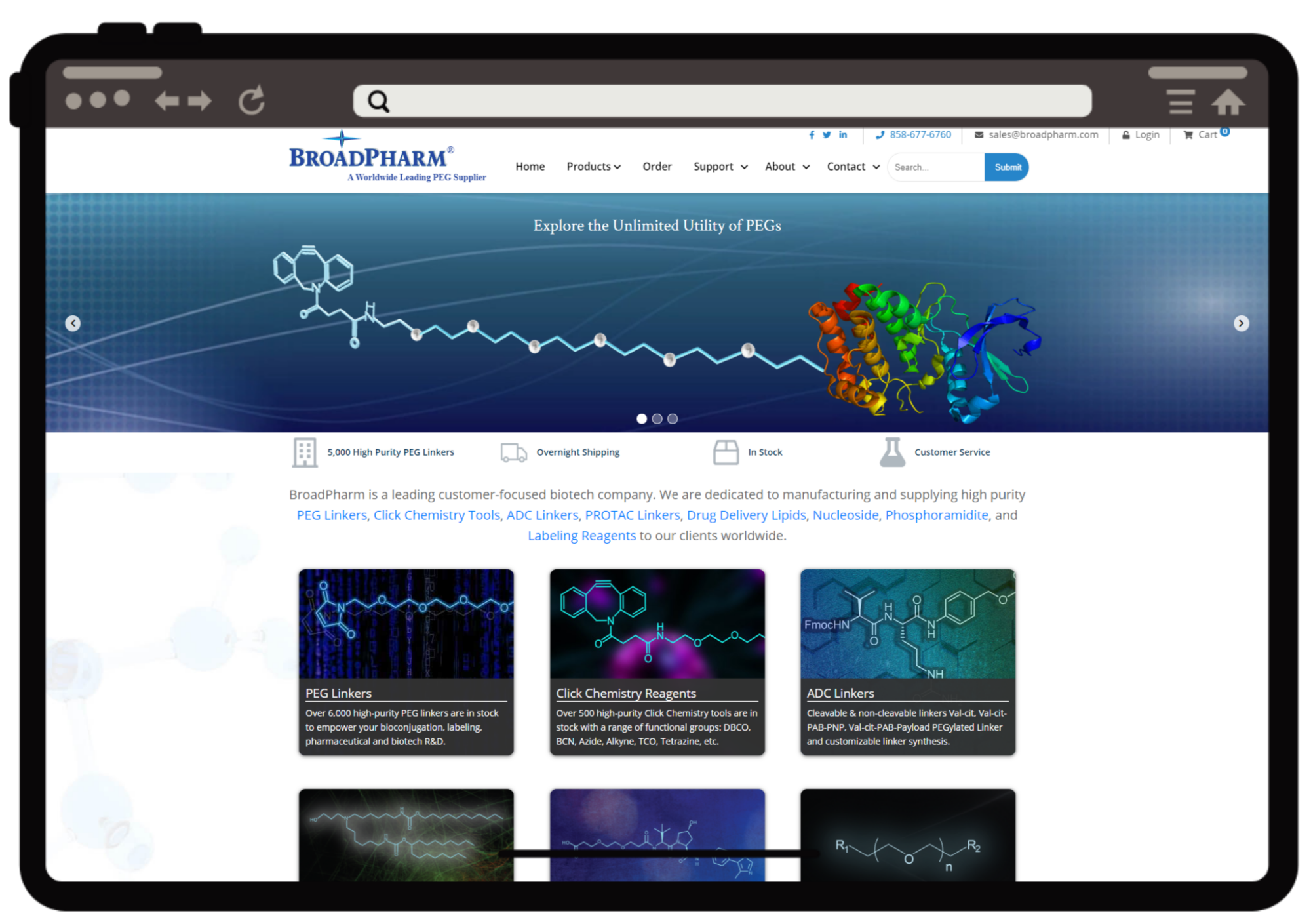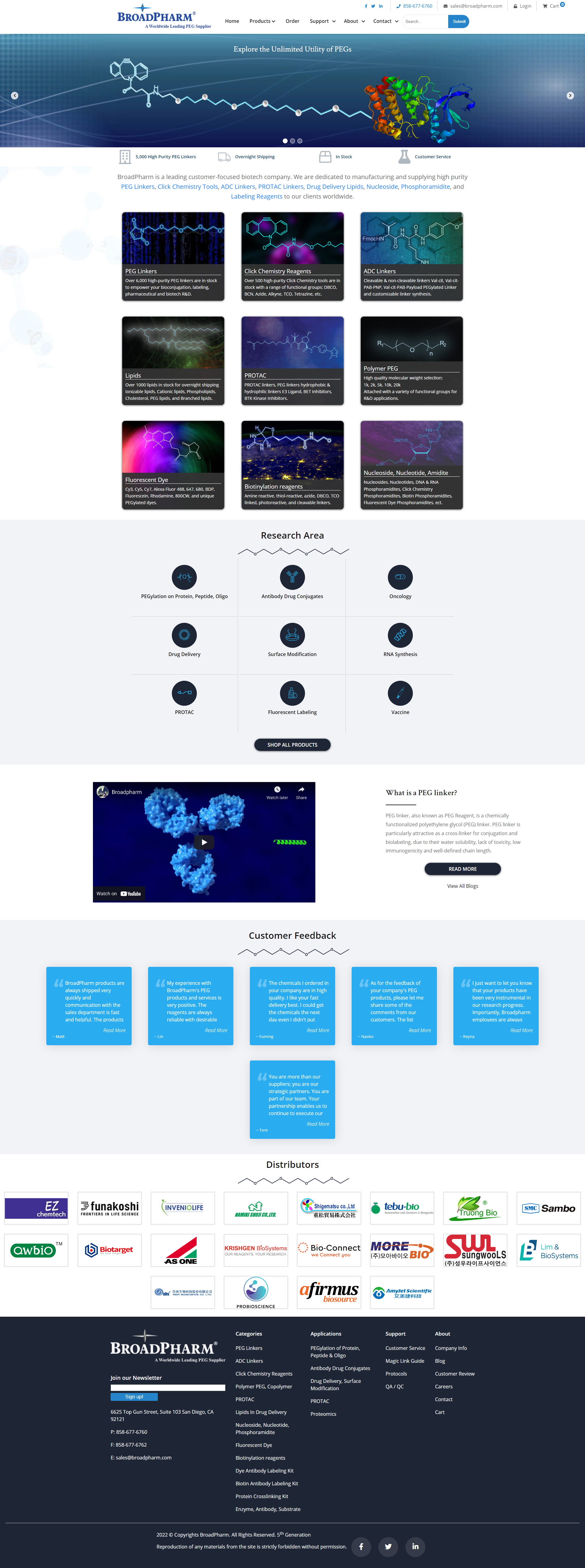 Broadpharm needed a comprehensive digital solution that could efficiently handle both the portfolio and e-commerce functionalities. This included creating a visually appealing and user-friendly interface, ensuring the platform's backend could manage complex data and transactions, and optimizing the website for search engines to reach a global audience. Additionally, ongoing maintenance and support were necessary to address bugs, backend errors, and continuously improve SEO practices.