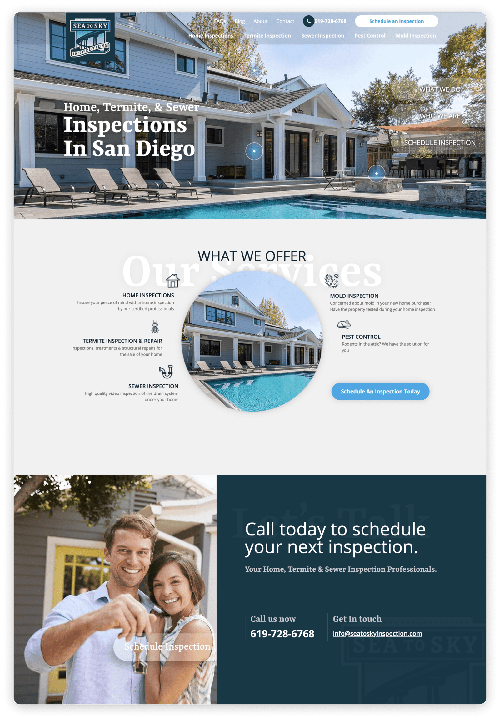 The existing online presence of Sea To Sky Inspection was inadequate in terms of design, functionality, and search engine visibility. There was a need for a complete overhaul to develop a custom website that could better represent the brand, provide an intuitive user experience, and support the company’s marketing efforts. Additionally, ongoing maintenance and support were required to address bugs, optimize the website, and implement SEO strategies. ‍To address these challenges, a full suite of services was provided, starting with custom website design and development. This included creating a visually appealing and user-friendly website tailored to Sea To Sky Inspection's brand and objectives. SEO strategies were implemented to improve search engine rankings and drive more organic traffic to the site. Ongoing maintenance and support focused on fixing bugs, optimizing website performance, and incorporating new features based on client needs. ‍