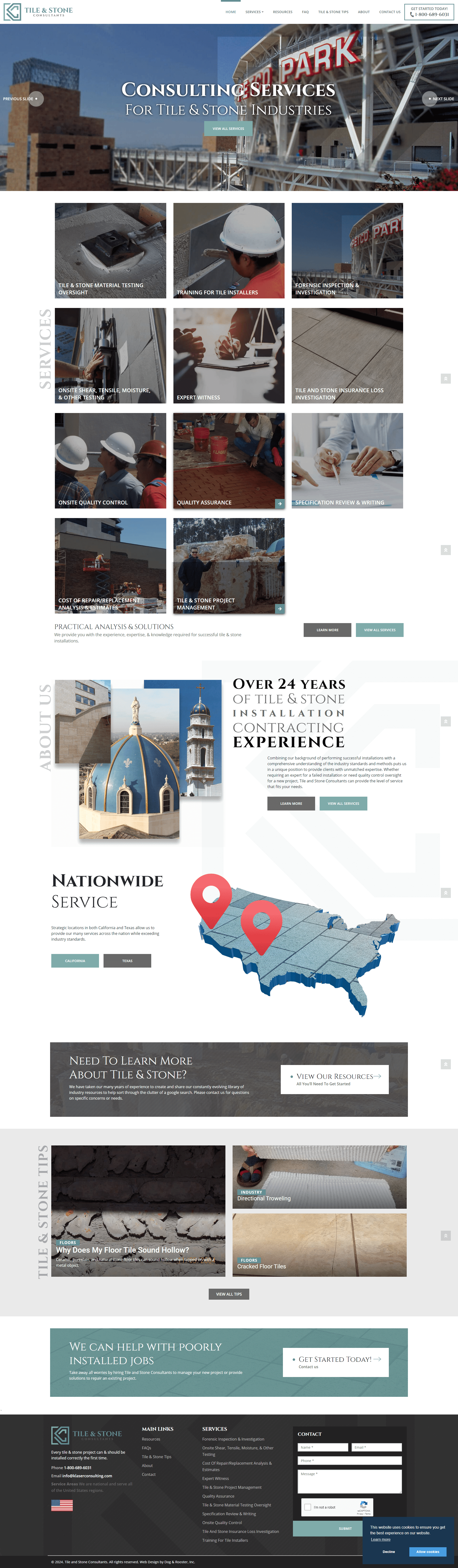 ‍Tile and Stone Consultants, guided by the profound industry knowledge and expertise of Kent Klaser, sought the technical prowess of Monte Carlo Web Graphics and Dog and Rooster, Inc. Their objective was to craft an online business portfolio that would not only showcase Kent’s authoritative content, including blogs, articles, case studies, and projects, but also serve as a marketing cornerstone to highlight their consultancy services.